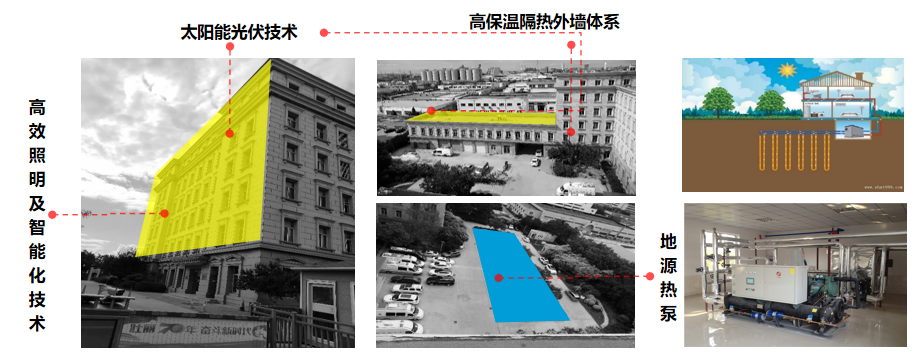 利用自有發(fā)明專(zhuān)利《太陽(yáng)能光伏光熱耦合雙源熱泵的建筑綜合供能系統及其控制方法》,開(kāi)展“空氣源能、復疊熱泵、儲能供能、智慧運維”等低碳(零碳)改造關(guān)鍵技術(shù)集成,構建以可再生能源為主的新型建筑供暖系統。天津市濱海新區生態(tài)環(huán)境監測中心供暖合同能源管理項目為天津濱海院首個(gè)工程類(lèi)項目,同時(shí)為濱城首家公共機構能源托管建成運行項目,以此項目提交的科技專(zhuān)報《關(guān)于大規模開(kāi)展濱海新區公共機構合同能源管理的建議》,獲得天津市主要領(lǐng)導批示。